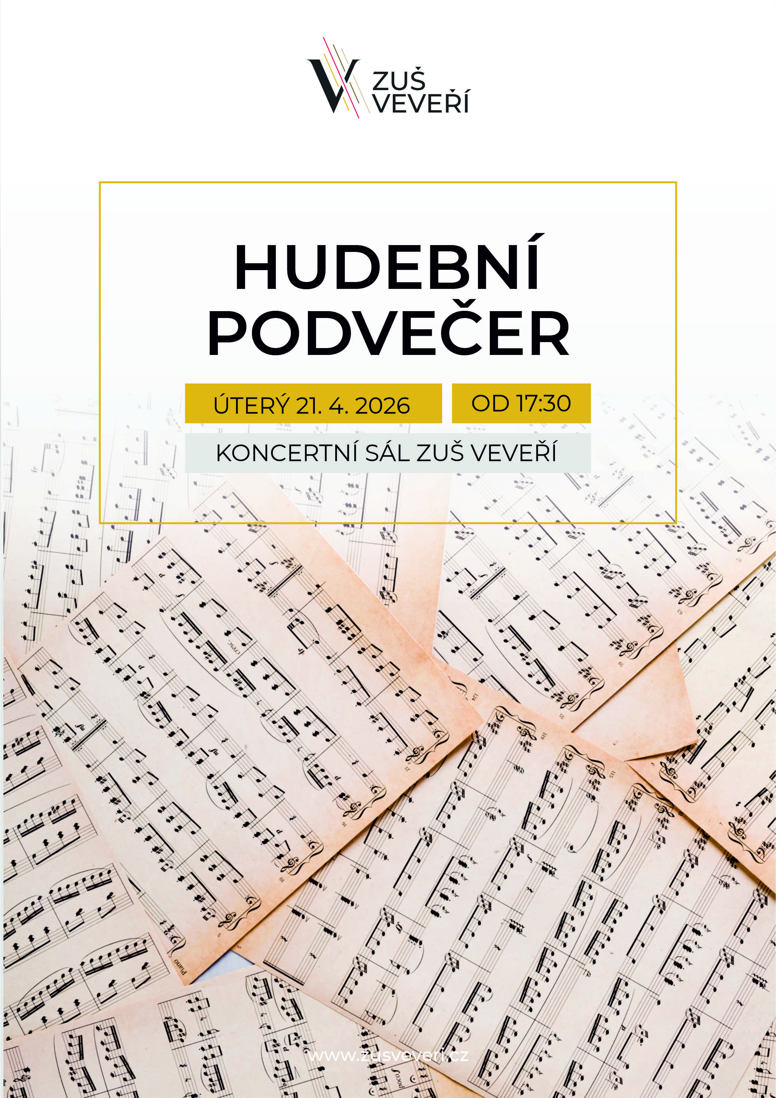 Zveme všechny rodiče, prarodiče, příbuzné a známé na hudební podvečer konaný v koncertním sále naší školy dne 21. 4. 2026 v 17:30 hodin. Budeme se moc těšit.
