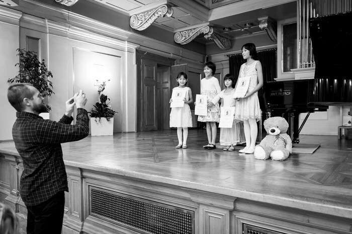 "Naše dcery vyrůstají v hudbě,“ říká otec Daniel Chmúra, Slovák, který si vzal Japonku a společně s ní vybudoval domov, kde mají tóny své pevné místo. "Z mé strany je klavír pro děti něco jako tělocvična pro mozek. Ve škole jim nedávají moc intelektuálně zabrat, domácí úkoly od učitele klavíru jsou mnohem náročnější."