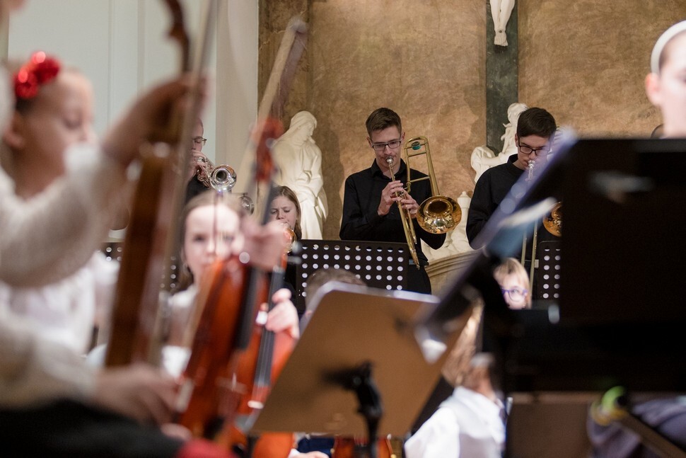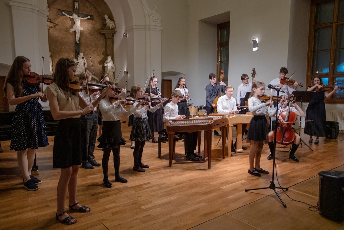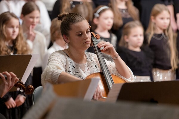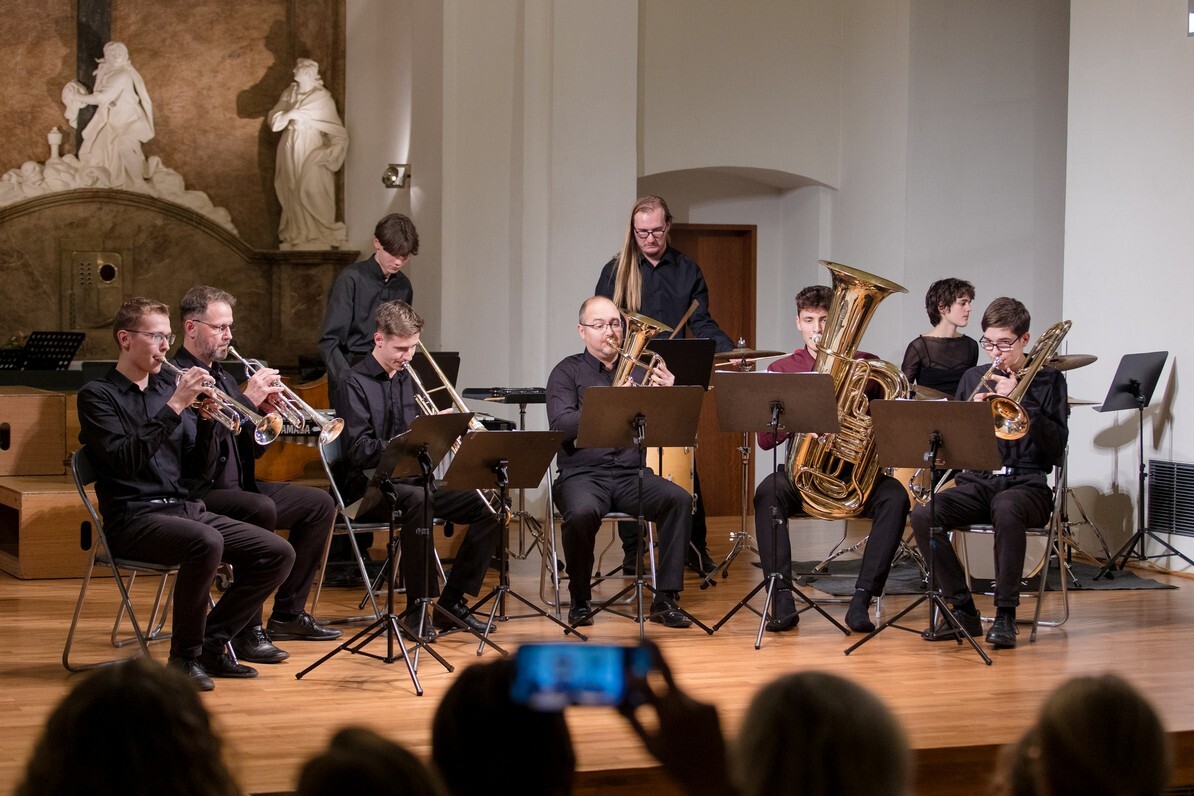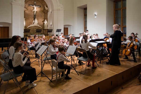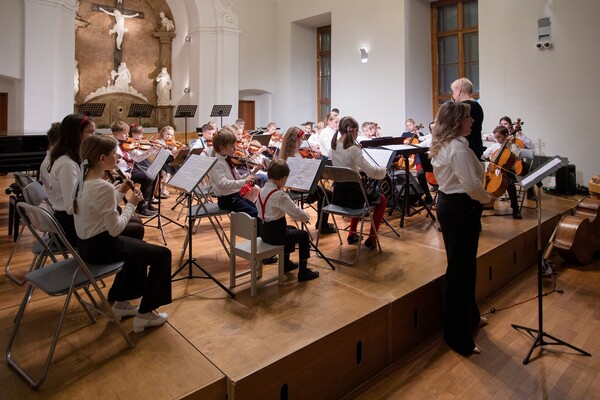 Koncert v konventu přináší pestré nástrojové obsazení, vysokou úroveň a hřejivou atmosféru. Zvláštním číslem letos byla „Směs oblíbených písní vánočních” Karla Steckera v kouzelném provedení našich sborů s orchestrem pedagogů.