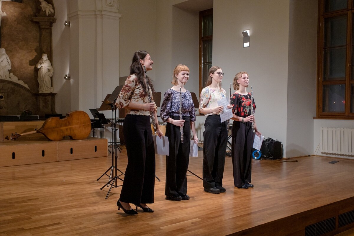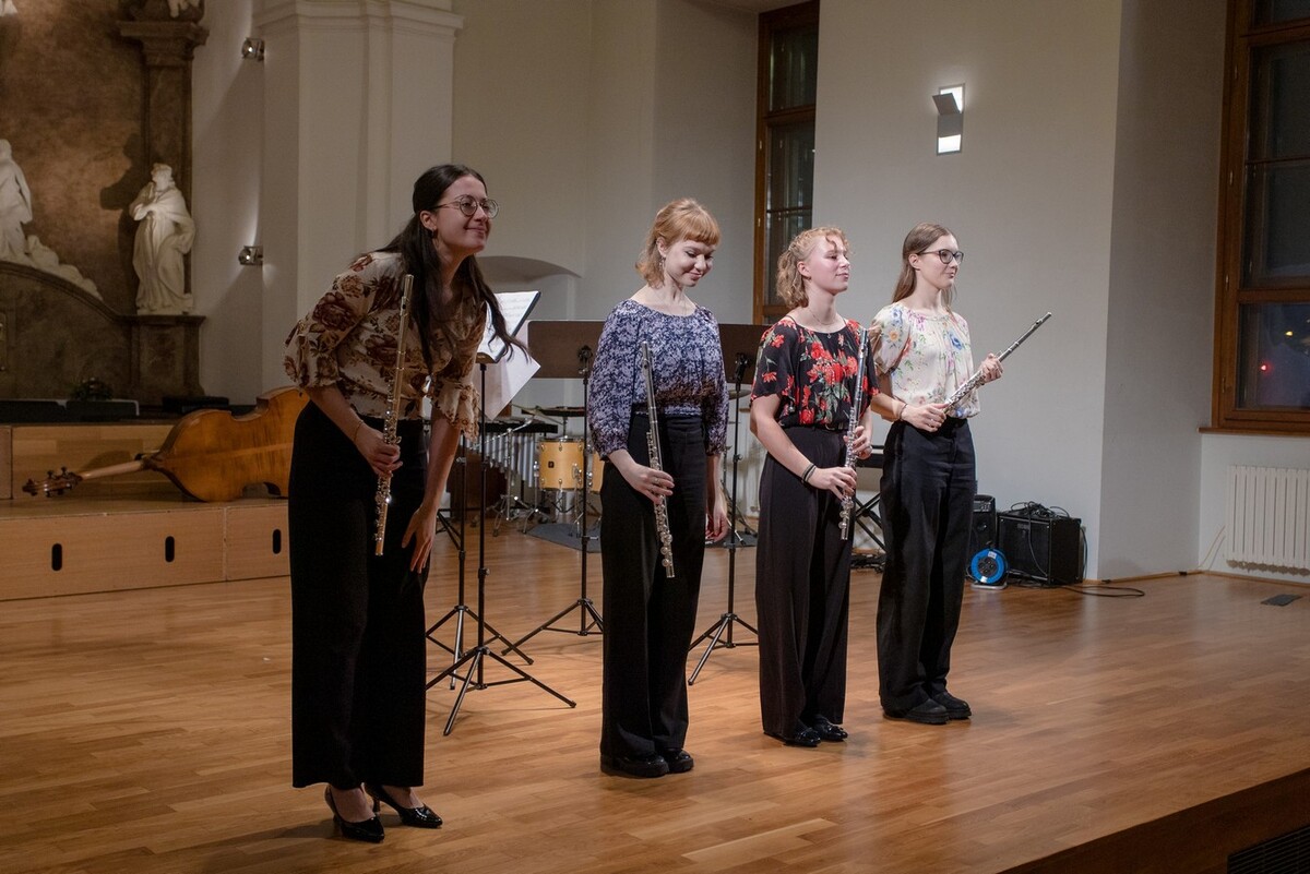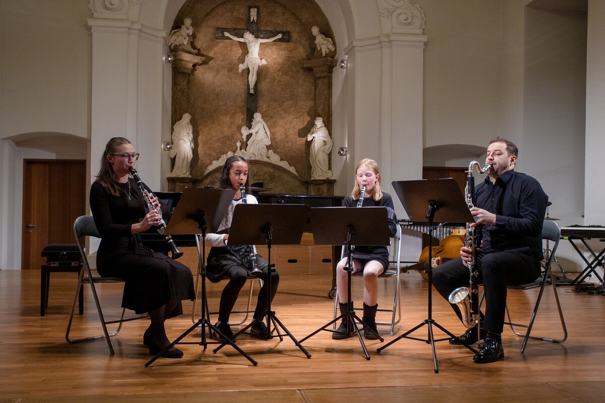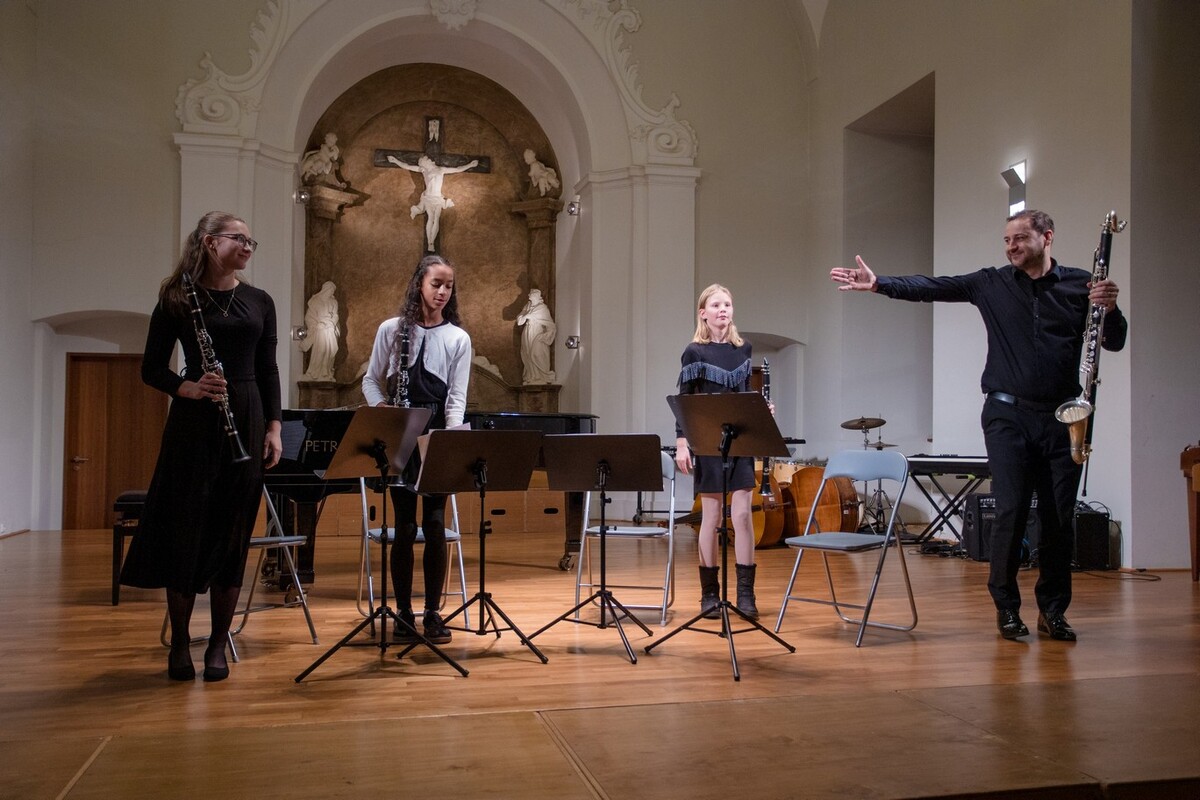 Koncert v konventu přináší pestré nástrojové obsazení, vysokou úroveň a hřejivou atmosféru. Zvláštním číslem letos byla „Směs oblíbených písní vánočních” Karla Steckera v kouzelném provedení našich sborů s orchestrem pedagogů.