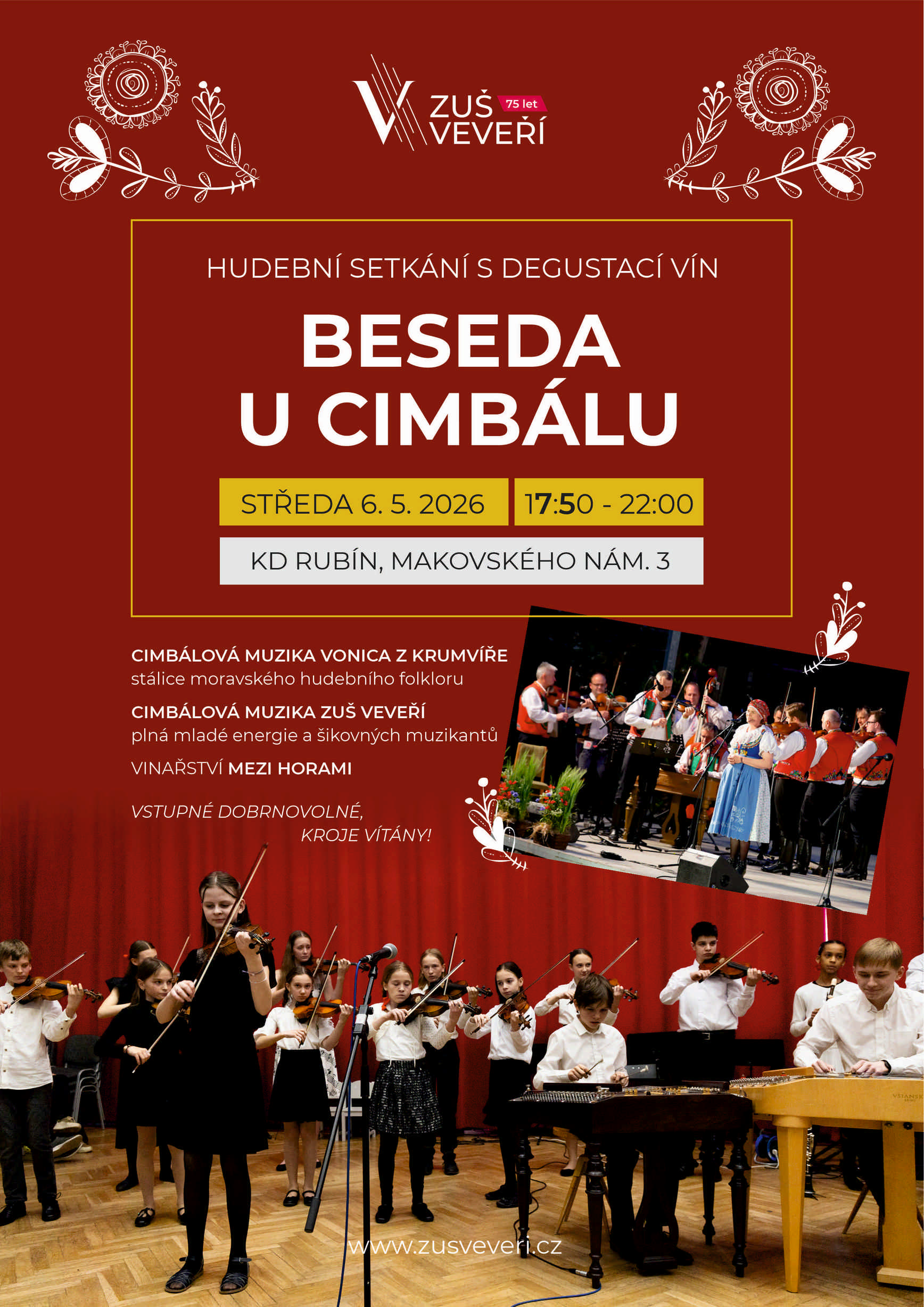 Cimbálová muzika ZUŠ Veveří je ze všech školních souborů tím nejdéle působícím. Je plná energie a šikovných muzikantů, v loňském školním roce získala 1. cenu v ústředním kole soutěže MŠMT.