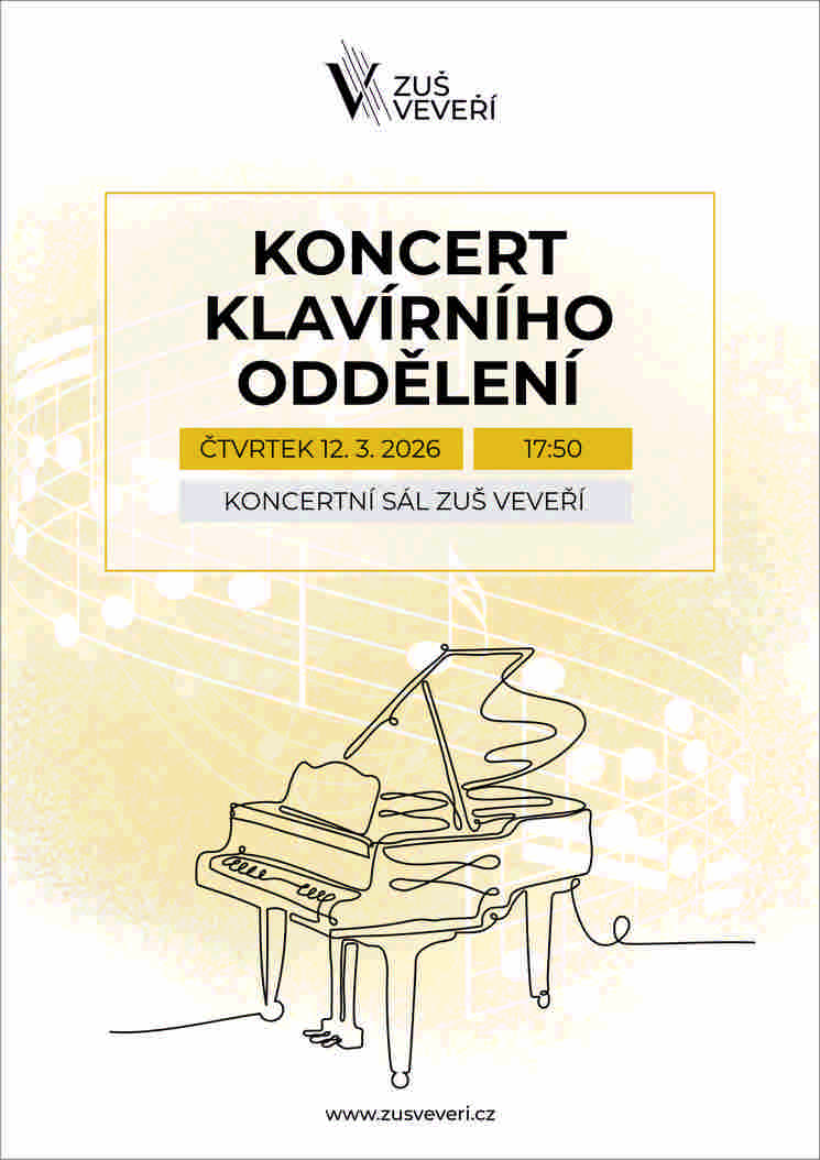 Srdečně vás všechny zveme na koncert klavírního oddělení, který se koná ve čtvrtek 12. 3. 2026 v 17:50 hodin v koncertním sále naší školy.