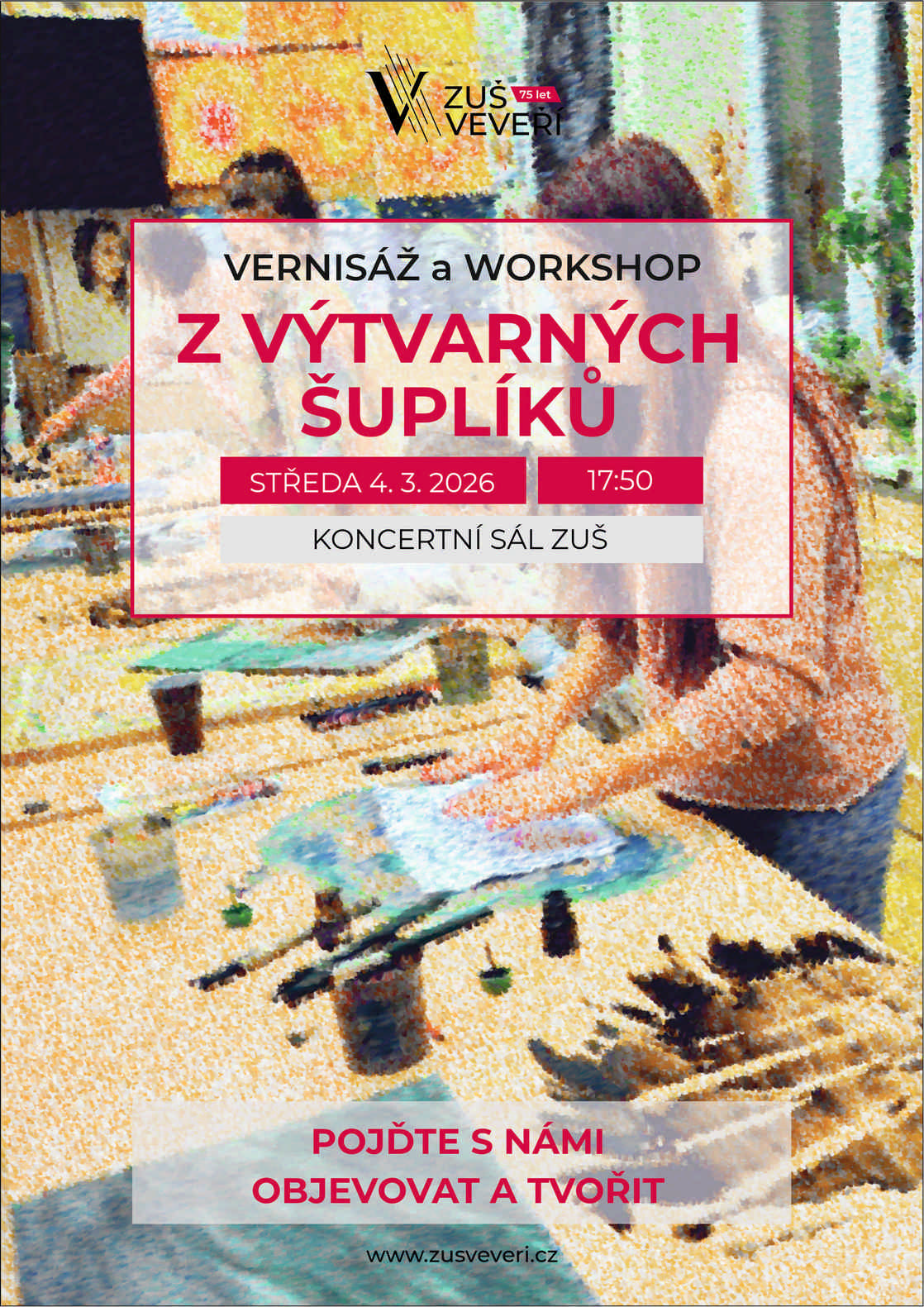 Součástí vernisáže budou i výtvarné ateliéry – budete si moci některé pomůcky a techniky sami vyzkoušet.