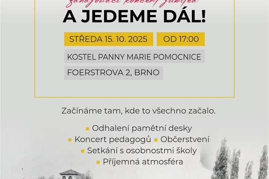 Srdečně vás zveme na Zahajovací koncert, první z mimořádných akcí k významnému 75. jubileu školy, který se bude konat ve středu dne 15. 9. 2025 v 17:00 hodin v salesiánském středisku mládeže na Foerstrove 2 v Žabovřeskách.